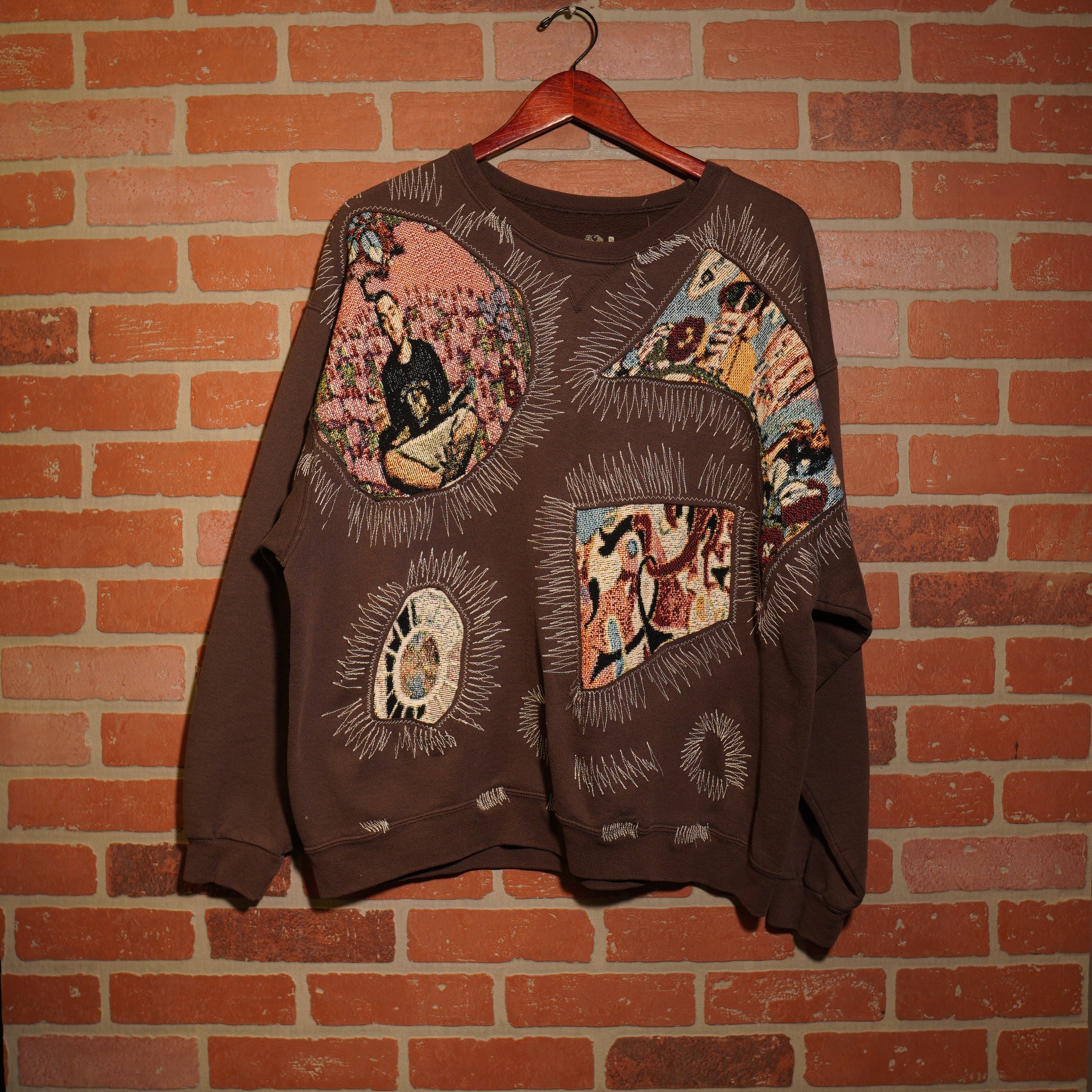 Trevs1of1 Custom Mac Miller Chain-Stitched Brown Crewneck